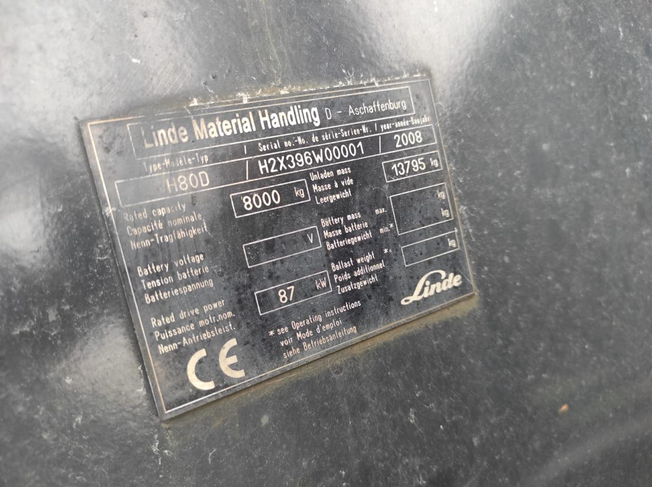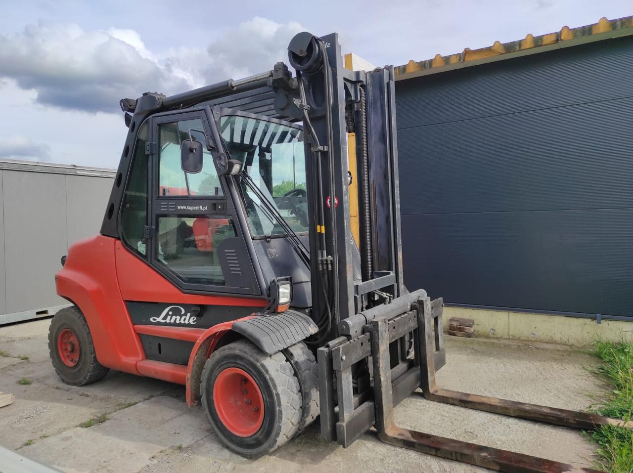 Wózek widłowy Linde H 80 D — diesel, 8 t Stan: używany, doskonały Rok: 2008 Przebieg: ~7800 h Udźwig: 8000 kg Cechy: mocny silnik diesla, hydrostatyczna skrzynia biegów Linde, wysoka niezawodność, idealny do ciężkich zadań przemysłowych. Gotowy do pracy.